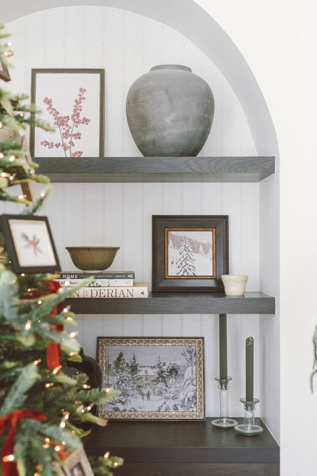 Snowy Stroll Framed Antique Art